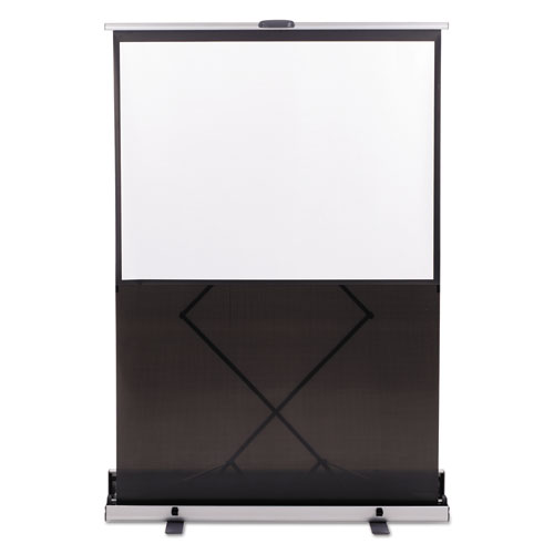 High-contrast portable cinema projection screen delivers precise images for a guaranteed clear picture. Lightweight, 22 lb screen is ideal for the home or office. Expands from 50" to 74" high in an instant for easy viewing by all audience sizes. Easy-to-use lift mechanism allows for set up with just one hand. Sturdy, locking feet hold the screen in place. Sleek, durable carrying case allows for safe, easy portability. Modern Euro™ design provides sleek styling and maximum durability.