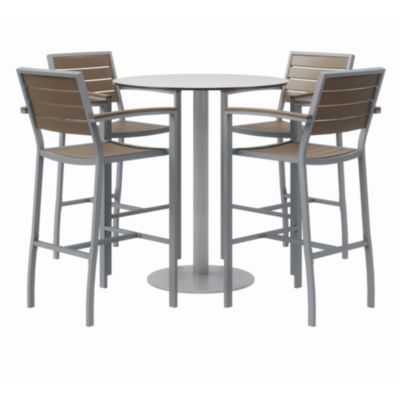 Eveleen Outdoor Bistro Patio Table w/ Four Mocha Powder-Coated Polymer Barstools, Round, 41"h, Gray, Ships in 4-6 Bus Days