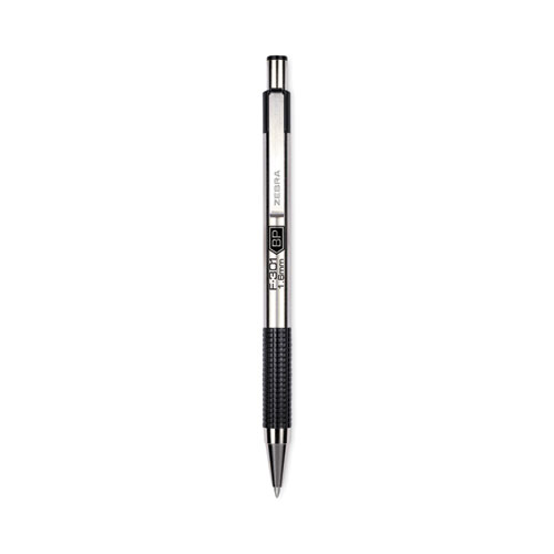 F-301 Ballpoint Pen, Retractable, Bold 1.6 mm, Black Ink, Stainless Steel/Black Barrel, 12/Pack