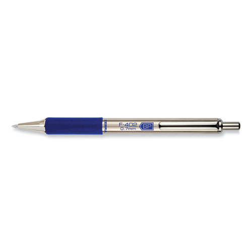 F-402 Ballpoint Pen, Retractable, Fine 0.7 Mm, Blue Ink, Stainless Steel/blue Barrel