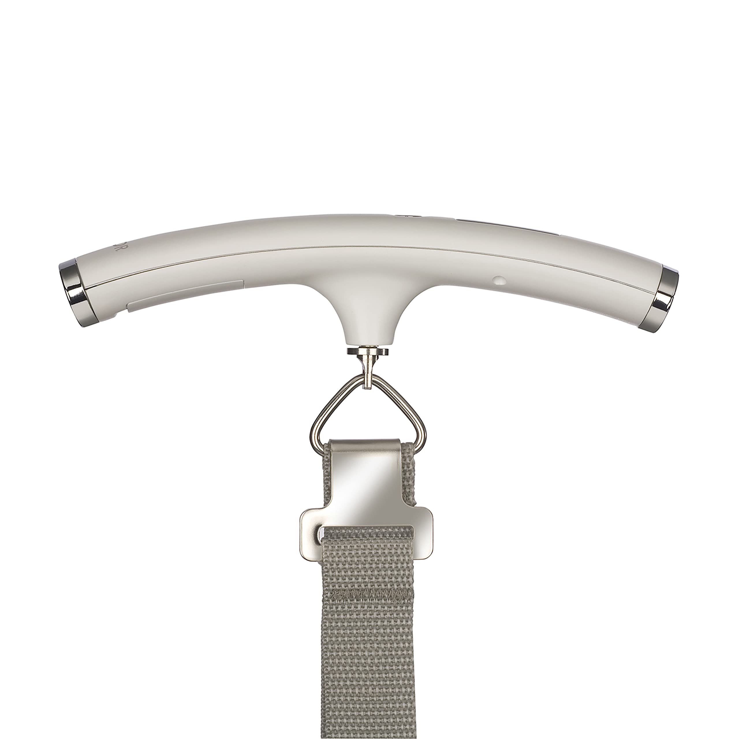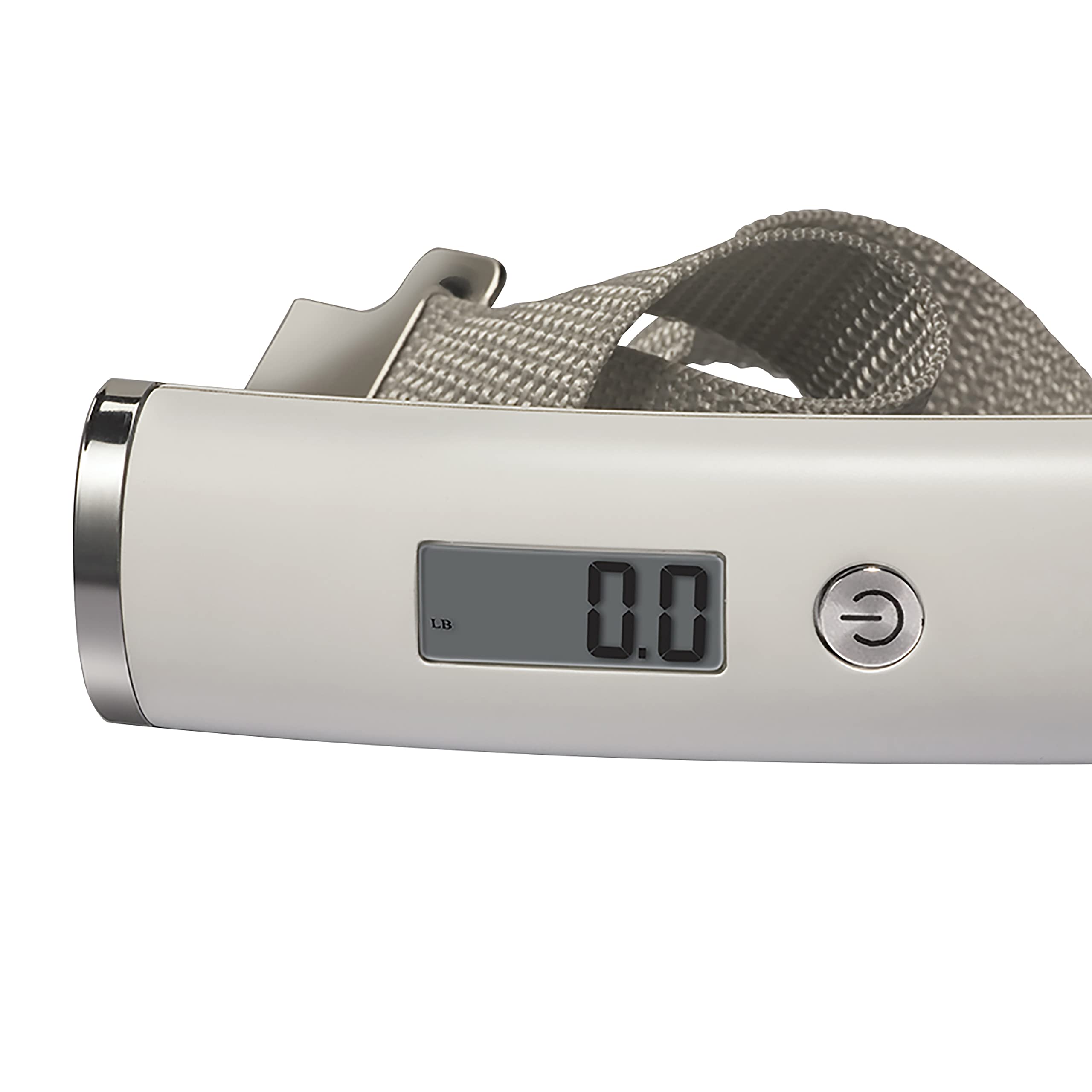 Luggage scale, small and lightweight - perfect for travel. Beeps when weight is locked in. Durable metal hook and rugged nylon web material for strap. Ultra contemporary plastic handle. 1.2" x 0.5" readout. 110lb capacity in 0.2 lb increments (lb/kg). Com