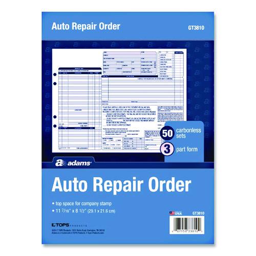 Multipart Auto Repair Work Order Forms, Three-Part Carbonless, 8.5 x 6.94, 50 Forms Total