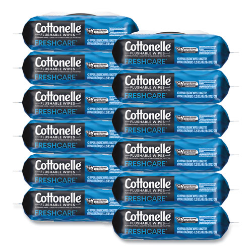 For a superior clean* that's fresh, gentle, and effective, choose Cottonelle® FreshCare Flushable Wipes with the CleaningRipples™ Texture. Cottonelle® bathroom wipes are 100% flushable, remove odor-causing bacteria and offer a large, dual layer wipe to clean better than when using dry toilet paper alone. These sanitary wipes are sewer-safe and septic-safe. *using dry + moist vs. dry toilet paper alone.