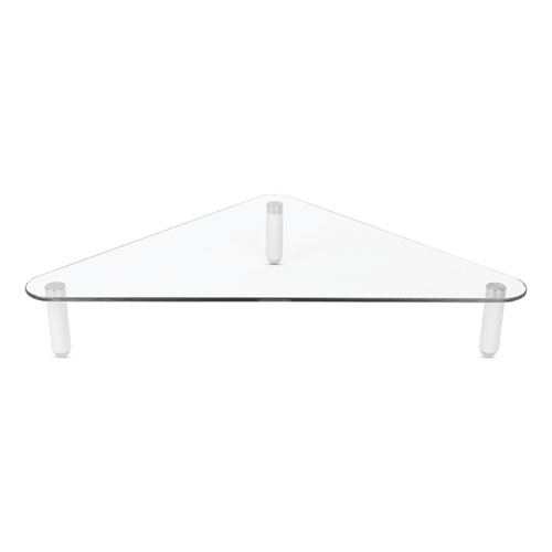 Glass Corner Monitor Riser, 19.7" x 11" x 3.25", Clear, Supports 40 lbs