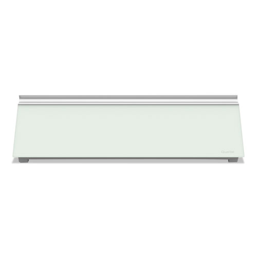 Durable glass surface will not stain or ghost, ensuring clean erasure after every use. Glass dry-erase notepad is infinitely reusable and replaces the need for scrap paper. 18" x 6" size allows notepad to fit neatly in between monitor and keyboard, maximizing available desktop space. Notepad board is slanted upward for easy reading and writing of notes and reminders. Storage drawer underneath holds sticky notes and other small accessories. Rail across the top holds dry-erase markers, and one Quartet® dry-ease marker with a cap-mounted eraser is included. Frameless design is sleek and attractive.
