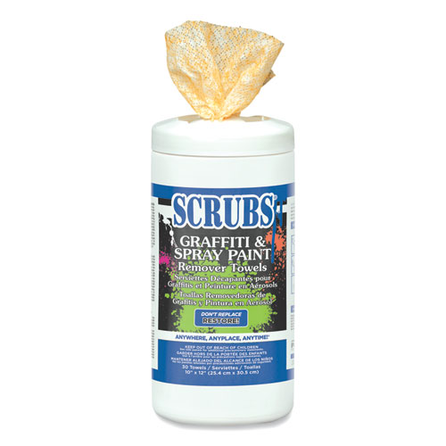Graffiti and Paint Remover Towels, Citrus, 10 x 12, Neutral Scent, Orange on White, 30/Canister, 6 Canisters/Carton