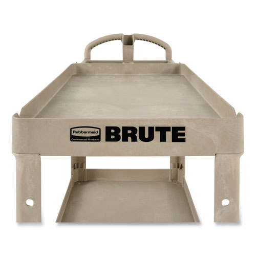 heavy-duty utility cart with lipped shelves, plastic, 2 shelves, 500 lb capacity, 17.13" x 38.5" x 38.88", beige
