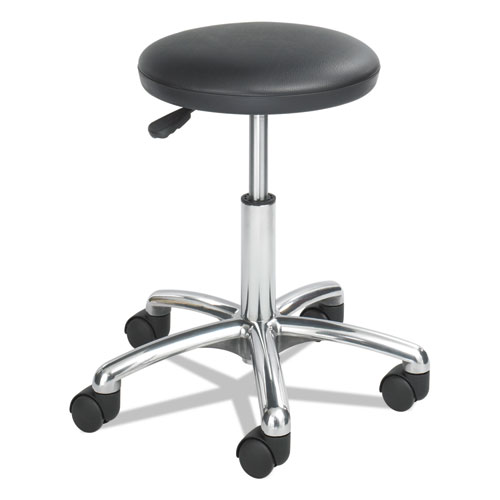 Height-Adjustable Lab Stool, Backless, Supports Up To 250 Lb, 16" To 21" Seat Height, Black Seat, Chrome Base