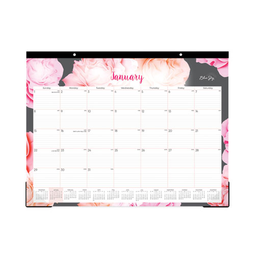 Joselyn Desk Pad, Rose Artwork, 22 x 17, White/Pink/Peach Sheets, Black Binding, Clear Corners, 12-Month (Jan-Dec): 2024
