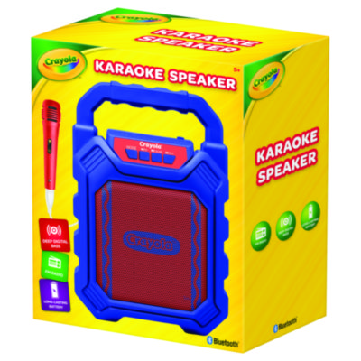 This karaoke speaker has deep bass for great sound, as well as an FM radio. Features colorful light FX and is Bluetooth® compatible.