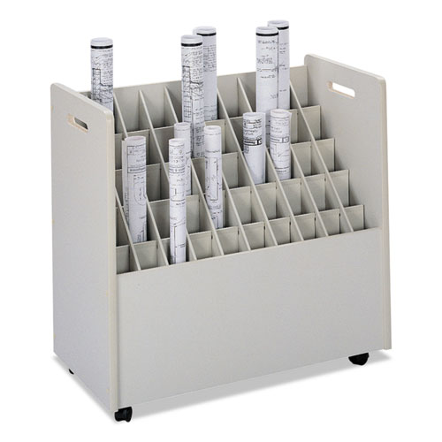 “Grandstand” design holds various length rolls at graduated heights for maximum visibility and accessibility. Square tubes for trouble-free removal of contents. Easily mobile with swivel casters. Sturdy wood-core with vinyl laminate finish.