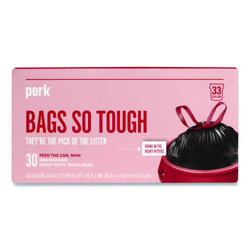 Drawstring Heavy-Duty Trash Bags, 33 Gal, 1.1 Mil, 37" X 33", Black, 30/box