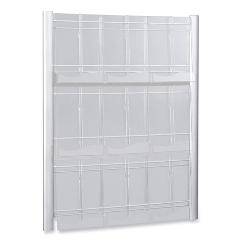 Luxe Magazine Rack, 9 Compartments, 31.75w x 5d x 41h, Clear/Silver, Ships in 1-3 Business Days