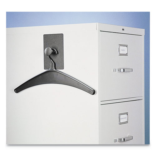 Durable hook backed by high-powered magnet secures to any magnetic surface, creating an efficient, space-conscious hanging system. Hang garments directly on durable steel post or use included Quartet® hanger. Compact, footless design ideal for tight spaces. Black powder-coat finish.