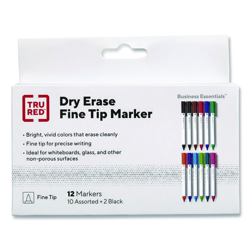 Dry Erase Marker, Pen-Style, Fine Bullet Tip, Assorted Colors, 12/pack