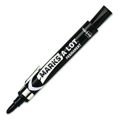 MARKS A LOT Large Desk-Style Permanent Marker with Metal Pocket Clip, Broad Bullet Tip, Black