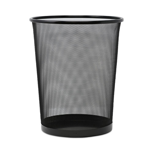 Durable and sturdy, black mesh wastebasket keeps workspaces neat and tidy. Stylish design of mesh looks great while keeping trash in its place. Use with or without a can liner. Solid rim makes it easy to carry and unload. Breathable mesh design prevents odors from getting trapped. Great for under the desk and inside work areas. Powder coated.