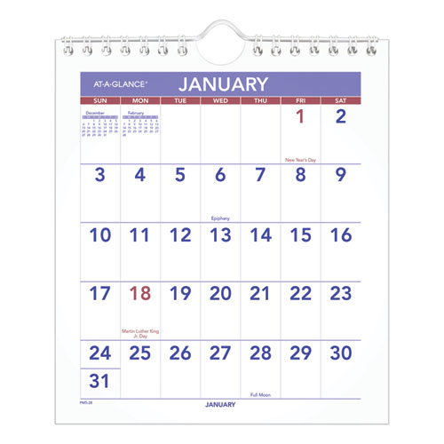 Perfect for small spaces. Displays one month per page with past and future month reference. Wirebound at the top. Unruled blocks for appointments and notes. Printed on high-quality paper with superior ink bleed resistance.