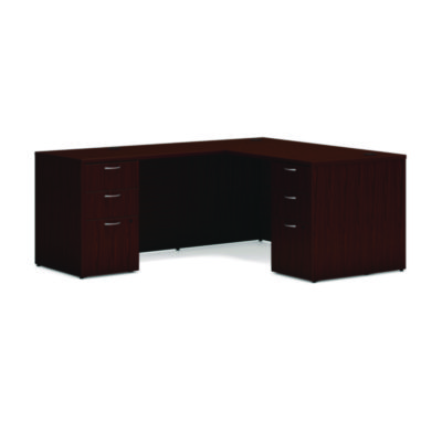 Mod offers any workspace, big or small, straightforward, no-nonsense design, exceptional durability and versatility that stands the test of time. This double pedestal L-station desking solution lets you protect what's important and provides easy access to personal items, office supplies, and more. Cancel cord confusion with handy desktop grommets designed to organized power and data cables.
