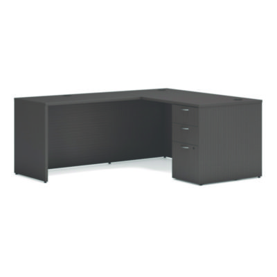 Mod offers any workspace, big or small, straightforward, no-nonsense design, exceptional durability and versatility that stands the test of time. This single pedestal L-station desking solution lets you protect what's important and provides easy access to personal items, office supplies, and more. Cancel cord confusion with handy desktop grommets designed to organized power and data cables.