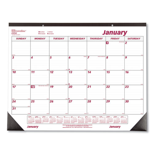 Monthly Desk Pad Calendar, 22 x 17, White/Burgundy Sheets, Black Binding, Black Corners, 12-Month (Jan to Dec): 2024