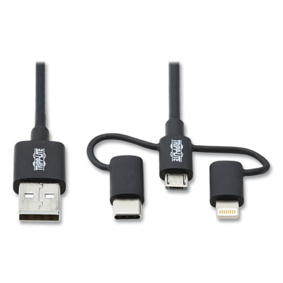 Universal USB-A to Lightning, USB Micro-B and USB-C sync and charge cable. All-in-one cable connects to a USB charger or computer to charge or sync your Apple, Android and Bluetooth mobile devices. Supports USB 2.0 speeds up to 480 Mbps to ensure efficient charging and data transfers.