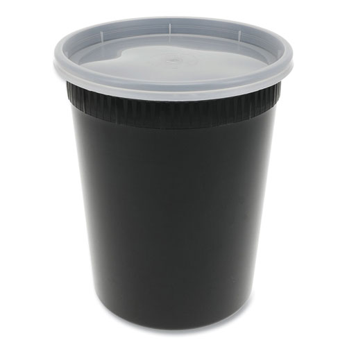newspring delitainer microwavable container, 32 oz, 4.55 x 4.55 x 5.55, black/clear, plastic, 240/carton