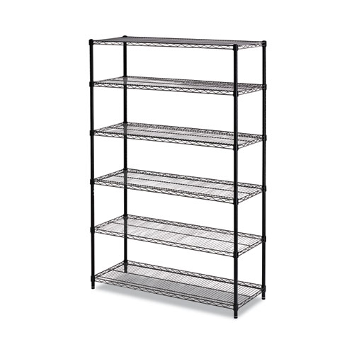 NSF Certified 6-Shelf Wire Shelving Kit, 48w x 18d x 72h, Black