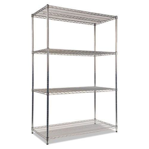 NSF Certified Industrial Four-Shelf Wire Shelving Kit, 48w x 24d x 72h, Silver
