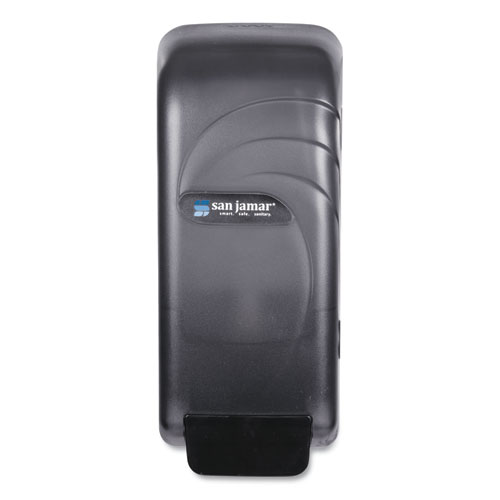 Versatile dispenser may be used in conjunction with three separate delivery systems: bulk liquids and gels, bag-in-box cartridges or bag refills. Included 800-mL bottle accommodates bulk liquid soaps and gel sanitizers. Impact-resistant plastic shell easily mounts to walls. Security lock utilizes a standard San Jamar® waffle key.