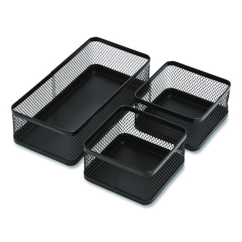Three Compartment Stackable Wire Mesh Desk Organizer, 8.46 X 4.92 X 4.33, Black