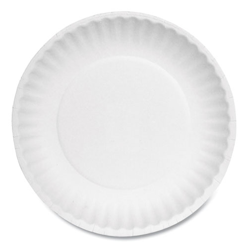 Affordable white uncoated paper plates. Lightweight design allows plates to be used for multiple purposes.