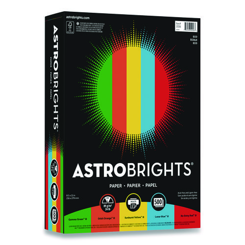 Color Paper, 24 lb Bond Weight, 8.5 x 11, Assorted Eco Colors, 500 Sheets/Ream
