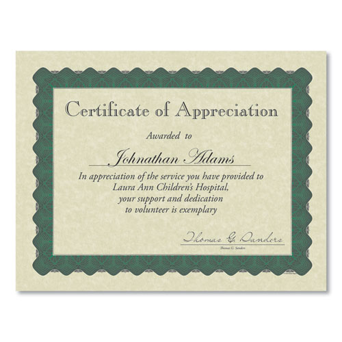 Metallic Border Certificates, 11 X 8.5, Ivory/green With Green Border, 100/pack
