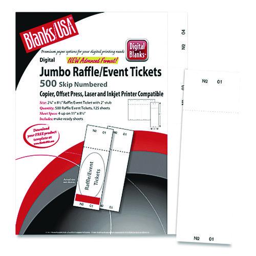 Jumbo Micro-Perforated Event/Raffle Ticket, 90 lb Index Weight, 8.5 x 11, White, 4 Tickets/Sheet, 250 Sheets/Pack
