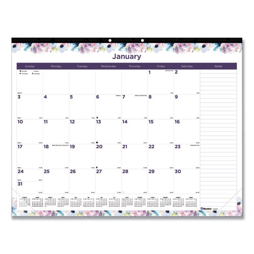 Passion Monthly Deskpad Calendar, Floral Artwork, 22 x 17, White/Multicolor Sheets, Black Binding, 12-Month (Jan-Dec): 2024