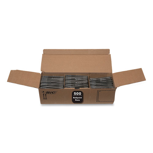 Round Stic Xtra Life Ballpoint Pen, Stick, Medium 1 mm, Black Ink, Translucent Black Barrel, 500/Pack