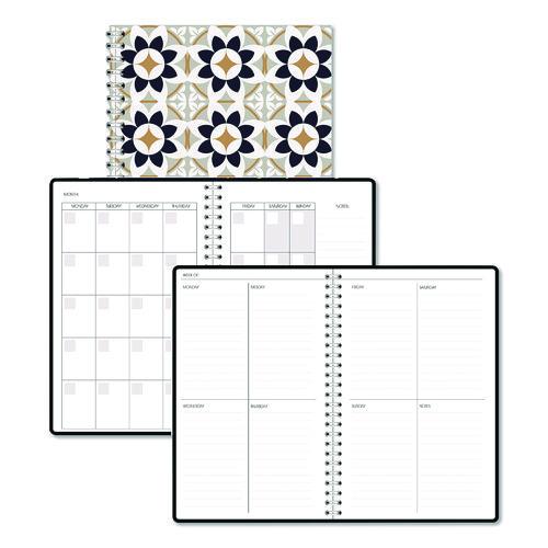 Recycled Non-Dated Monthly/Weekly Planner, Flower Tiles, Tan/Black/White Cover, Undated