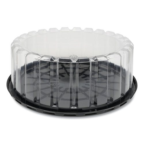 Plastic Cake Container, Shallow 9" Cake Container, 9" Diameter x 3.38"h, Clear/Black, 90/Carton