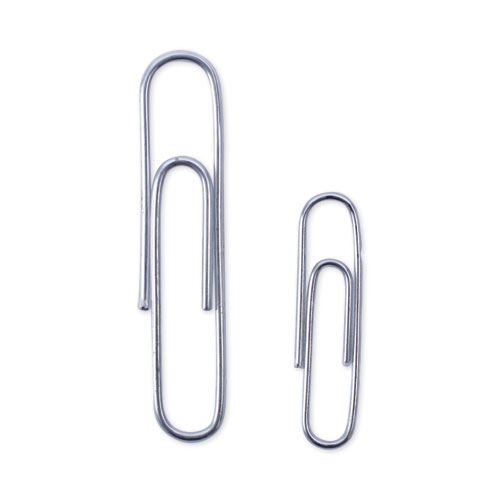 Plastic-Coated Paper Clips with Two-Compartment Dispenser Tub, (750) #2 Clips, (250) Jumbo Clips, Silver