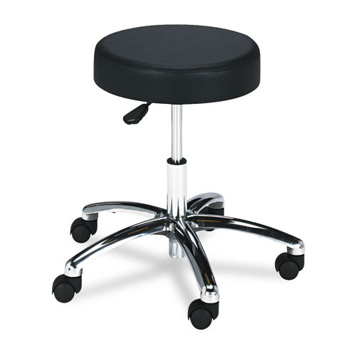 Pneumatic Lab Stool, Backless, Supports Up To 250 Lb, 17" To 22" Seat Height, Black Seat, Chrome Base