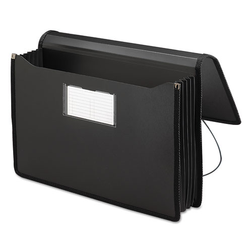 Poly Premium Wallets, 5.25" Expansion, 1 Section, Elastic Cord Closure, Legal Size, Black