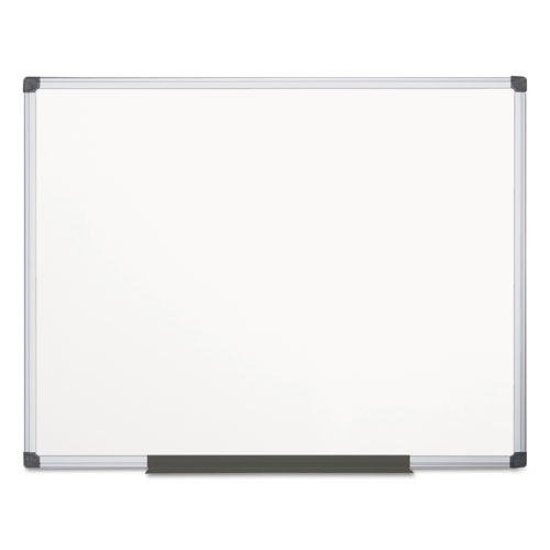 The Maya Porcelain Magnetic Dry-erase Board features a durable whiteboard surface that resists staining, ghosting and scratching to keep its bright, high-quality appearance through years of extensive use. Magnetic surface allows you to instantly post messages or attach your magnetic accessories. The professional Maya aluminum frame includes a four-corner mounting system that can be positioned either vertically or horizontally to provide versatility when reconfiguring an office or where wall space is limited. The adjustable aluminum pen tray offers a convenient way to keep your writing utensils within quick reach. This dry-erase board is perfect for classrooms, offices, training environments, meeting rooms and more.