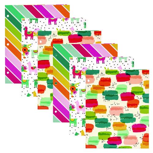 Two-Pocket Portfolio Folder, 1" Capacity, 9.6 x 11.9, Brush Strokes/Llamas/Stripes, 6/Pack