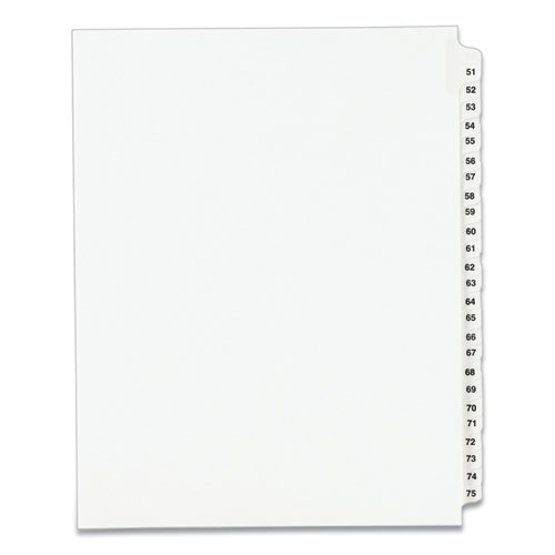 Preprinted Legal Exhibit Side Tab Index Dividers, Avery Style, 25-Tab, 51 To 75, 11 X 8.5, White, 1 Set, (1332)
