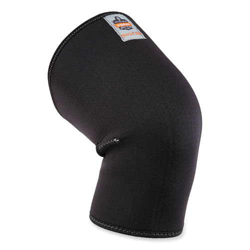 The ProFlex 600 Neoprene Compression Knee Sleeve provides comfortable knee and joint support on and off the worksite. The perforated neoprene stretch fabric compresses the knee to improve blood flow, aiding in pain relief and joint flexibility. This knee sleeve is a great solution for reducing pain and increasing productivity, particularly for those frequently kneeling on the job. This comfortable latex-free knee compression sleeve is made with a breathable perforated neoprene that does not limit range of motion. Soft spandex mesh in the knee crease further enhances airflow for all-day wear. The ambidextrous pre-curved design fits naturally on either leg and easily slides on over the knee for a snug fit. The low-profile style easily fits underneath clothing, but also can be worn on top depending on preference.