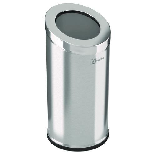 Beveled Open Top Trash Can, 15 gal, Stainless Steel, Silver
