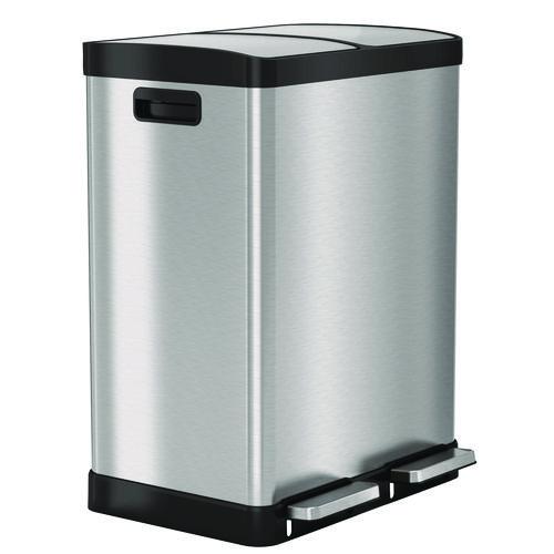 Fire-Resistant Step Pedal Trash Can and Recycle Bin, 16 gal, Plastic/Stainless Steel, Silver