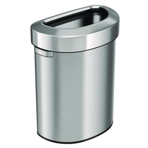 Open Top Trash Can, Half-Round, 18 gal, Plastic/Stainless Steel, Silver