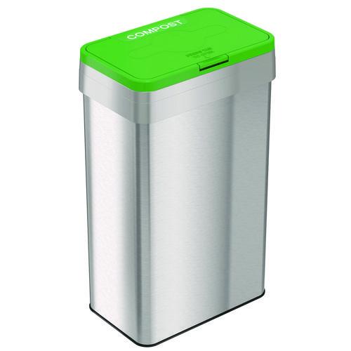 Open Top Compost Bin with Color-Coded Lid, 21 gal, Plastic/Stainless Steel, Silver/Green